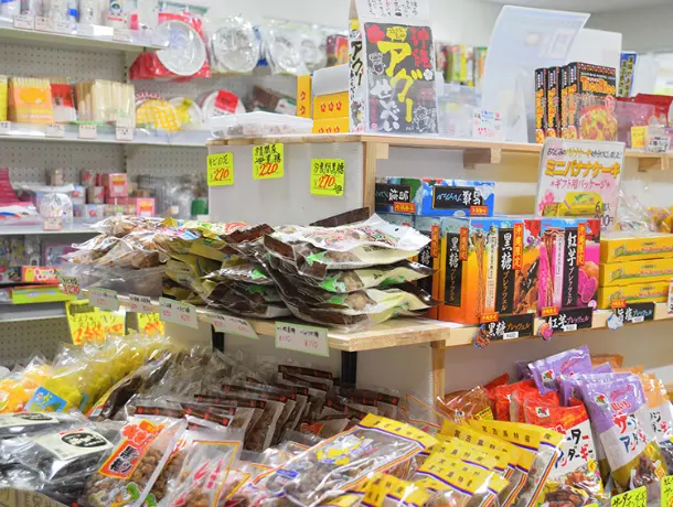 伊良部島人憩いの場、まるきスーパーでは地元ならではの商品が満載。 つまみとオリオンビールを買って部屋呑みもできます。 また、お土産品売り場も併設しております。